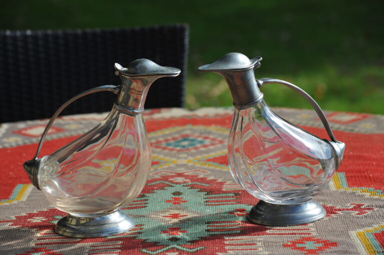 A Pair of Vintage Italian Glass and Pewter Stylised Duck Decanters