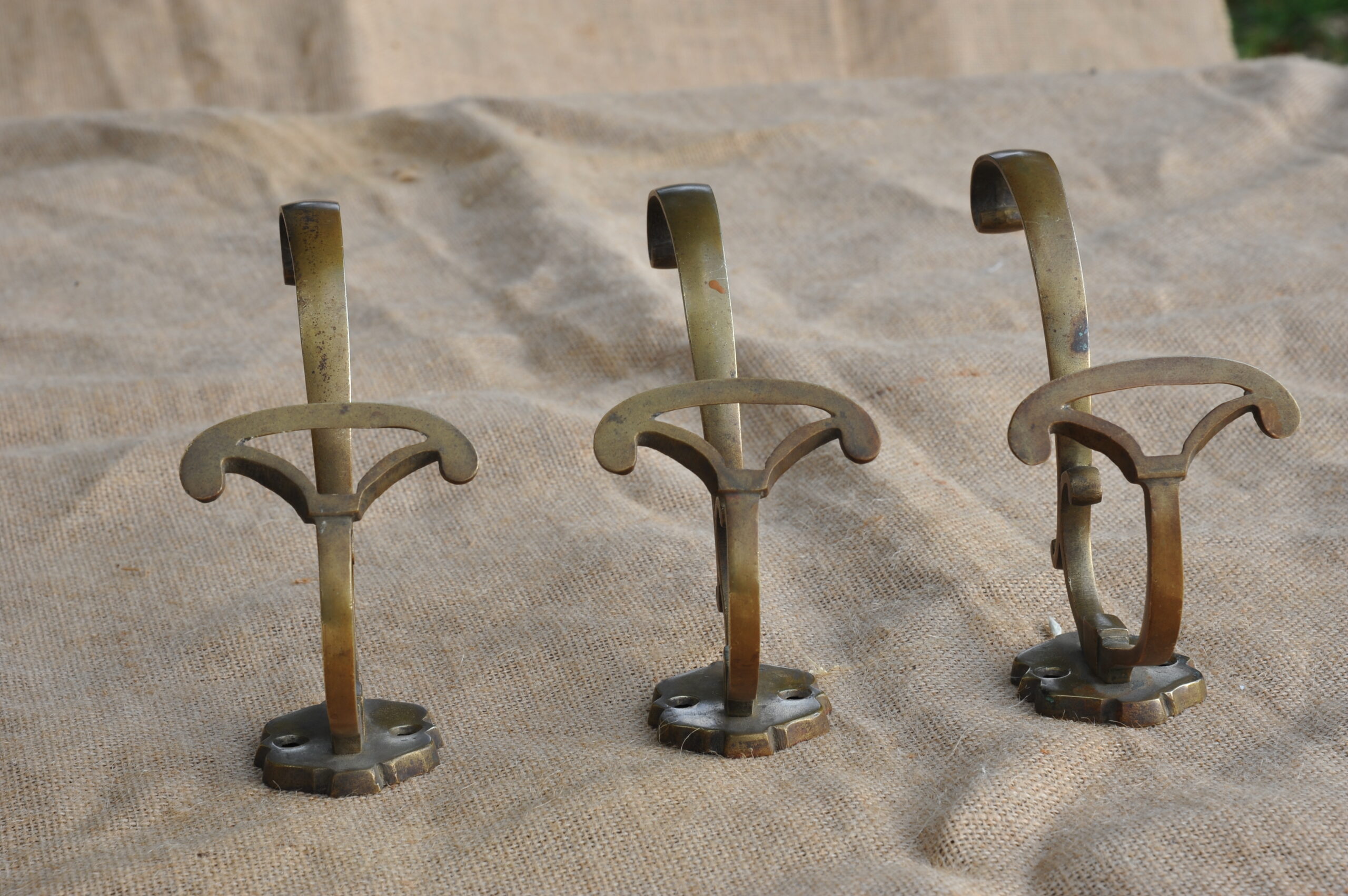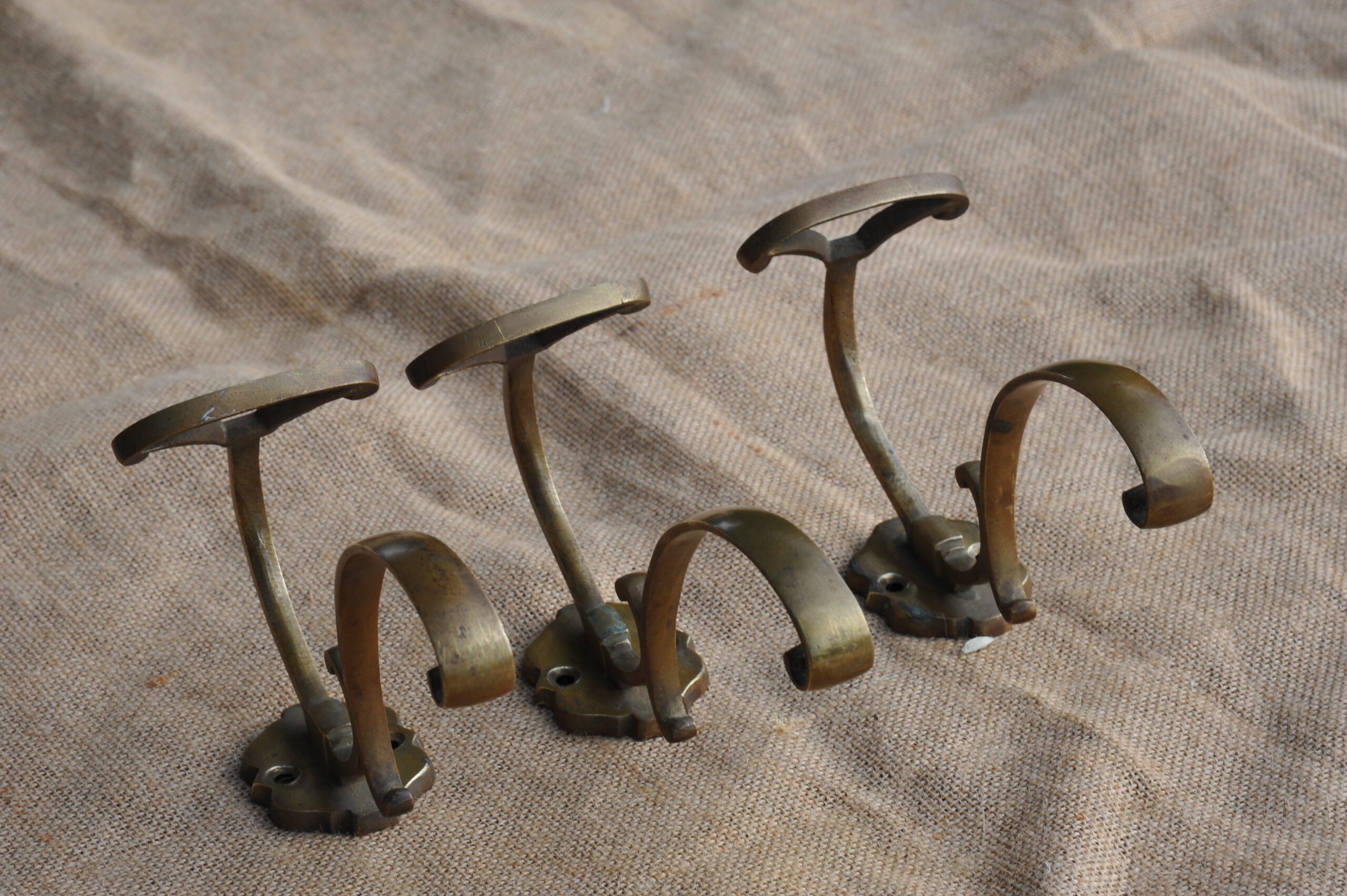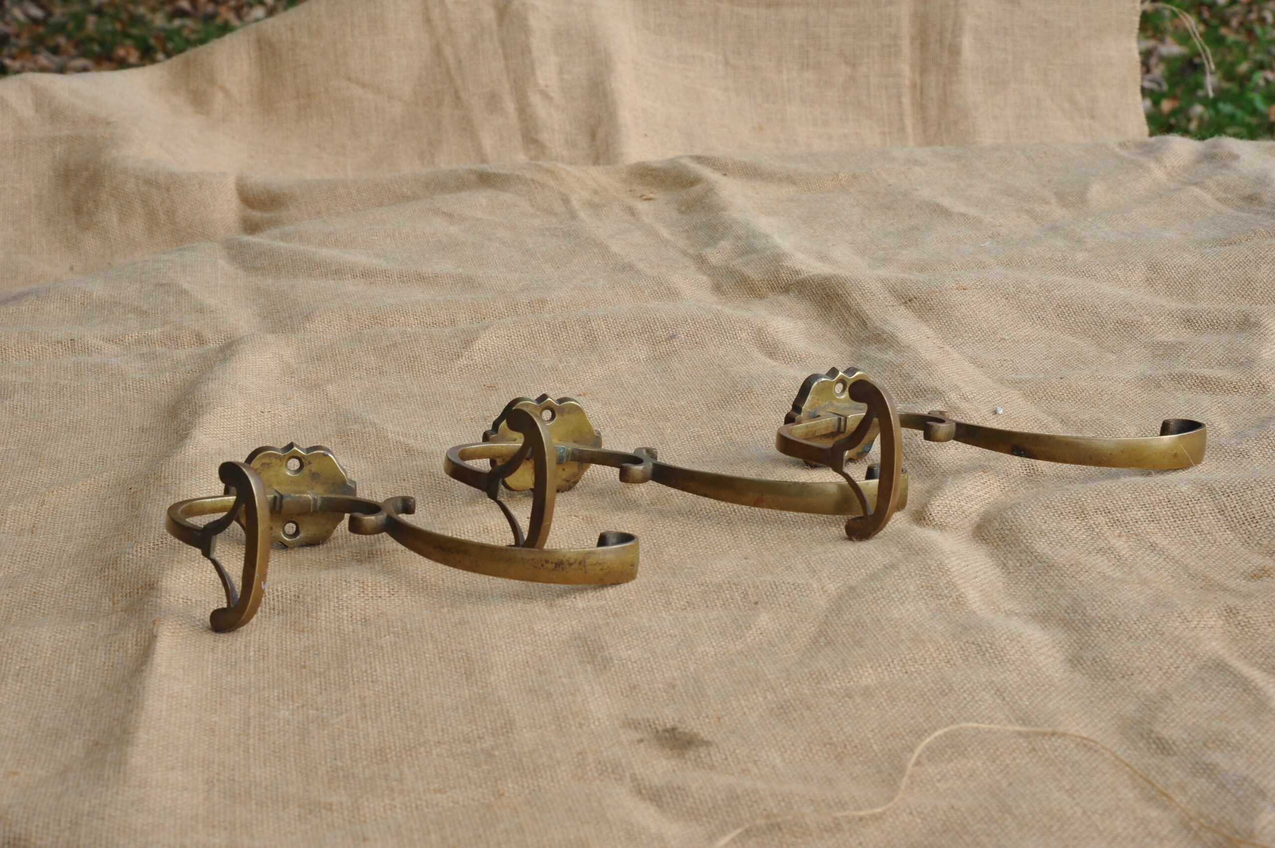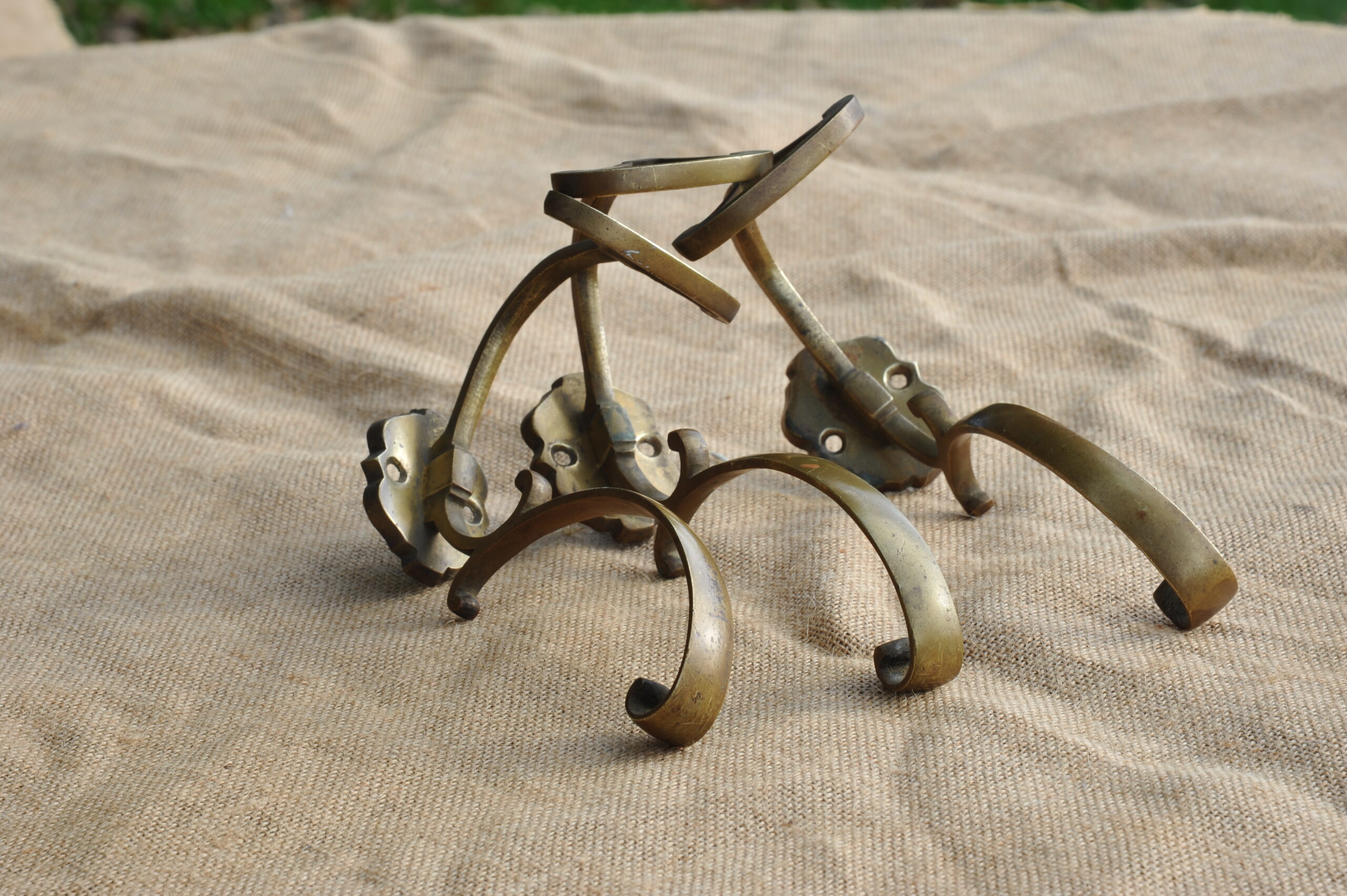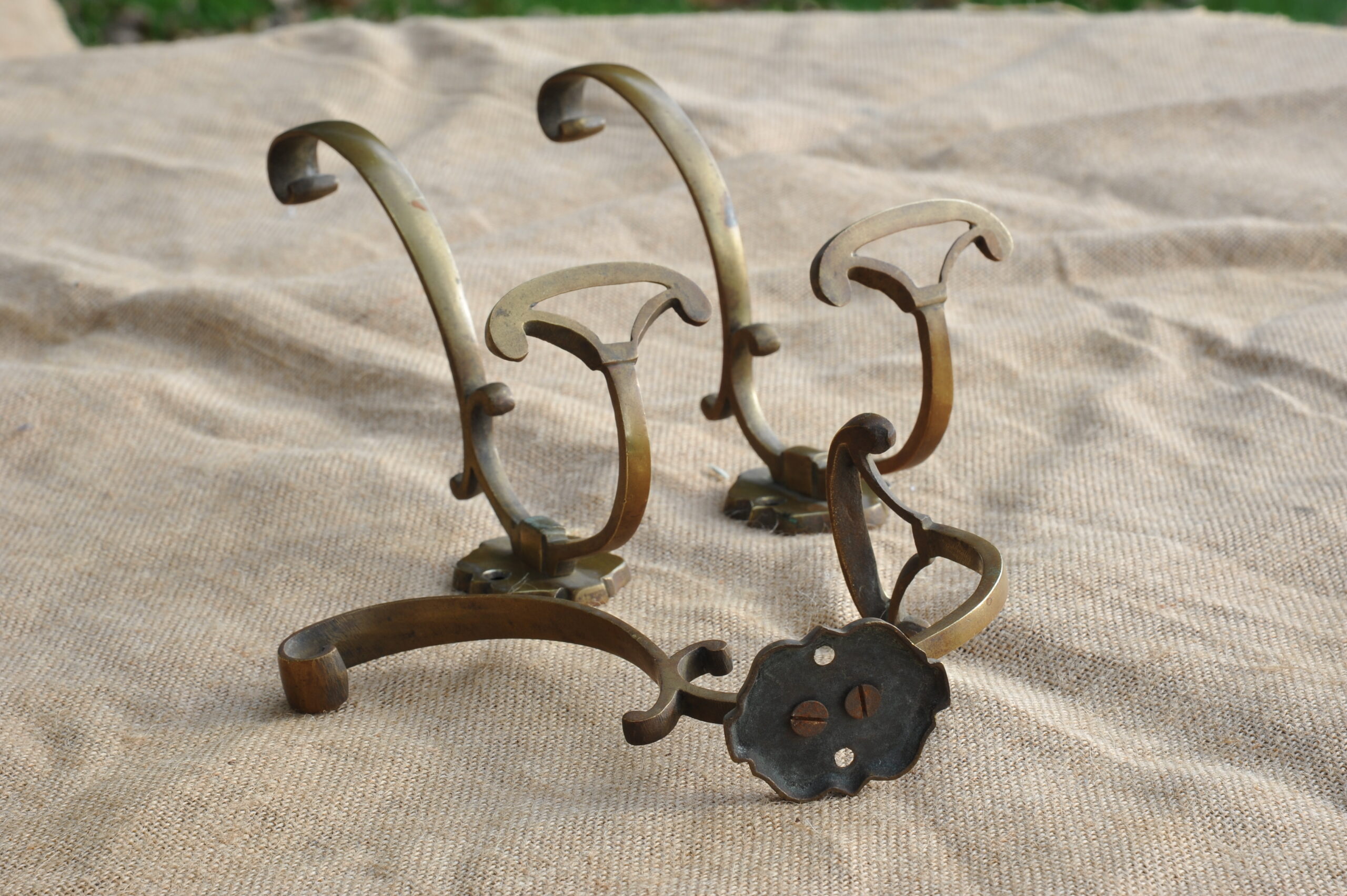 A Set of Three Good Antique French Bronze Wall Mounted Hat and Coat Hooks