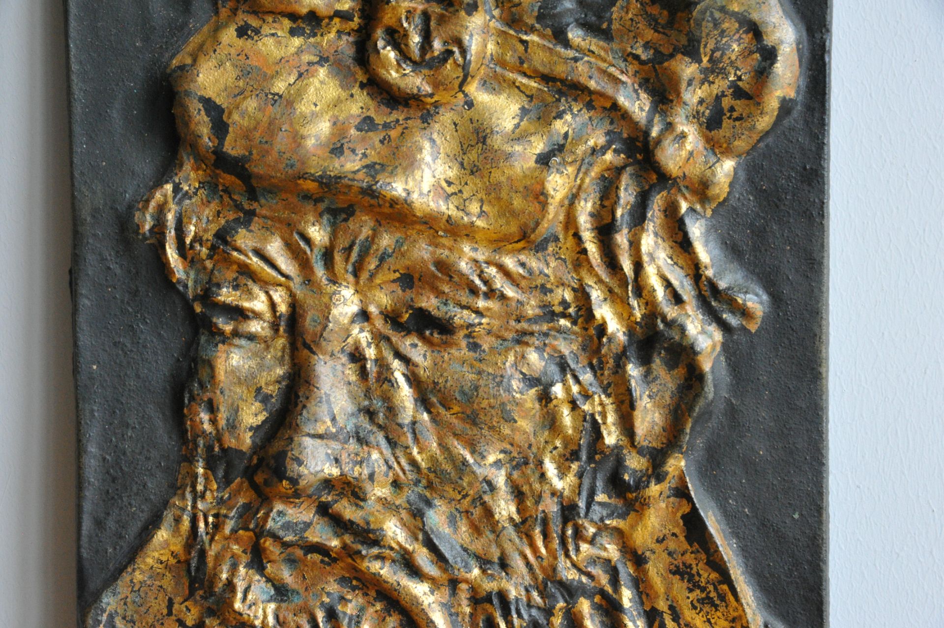 Extremely heavy gilded cast iron releif of an old sea captain, monogrammed. Difficult material to age exactly but we feel confident it is at least 40 years old.