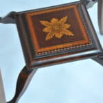 For such a delicate table it has remained remarkably intact, crucially no breakages to legs. Notable are a small section of Satinwood and Ebony strung inlay on the small undertier has been replaced along with a couple of very small beading sections around top of legs. Top as expected is faded compared to the undertier