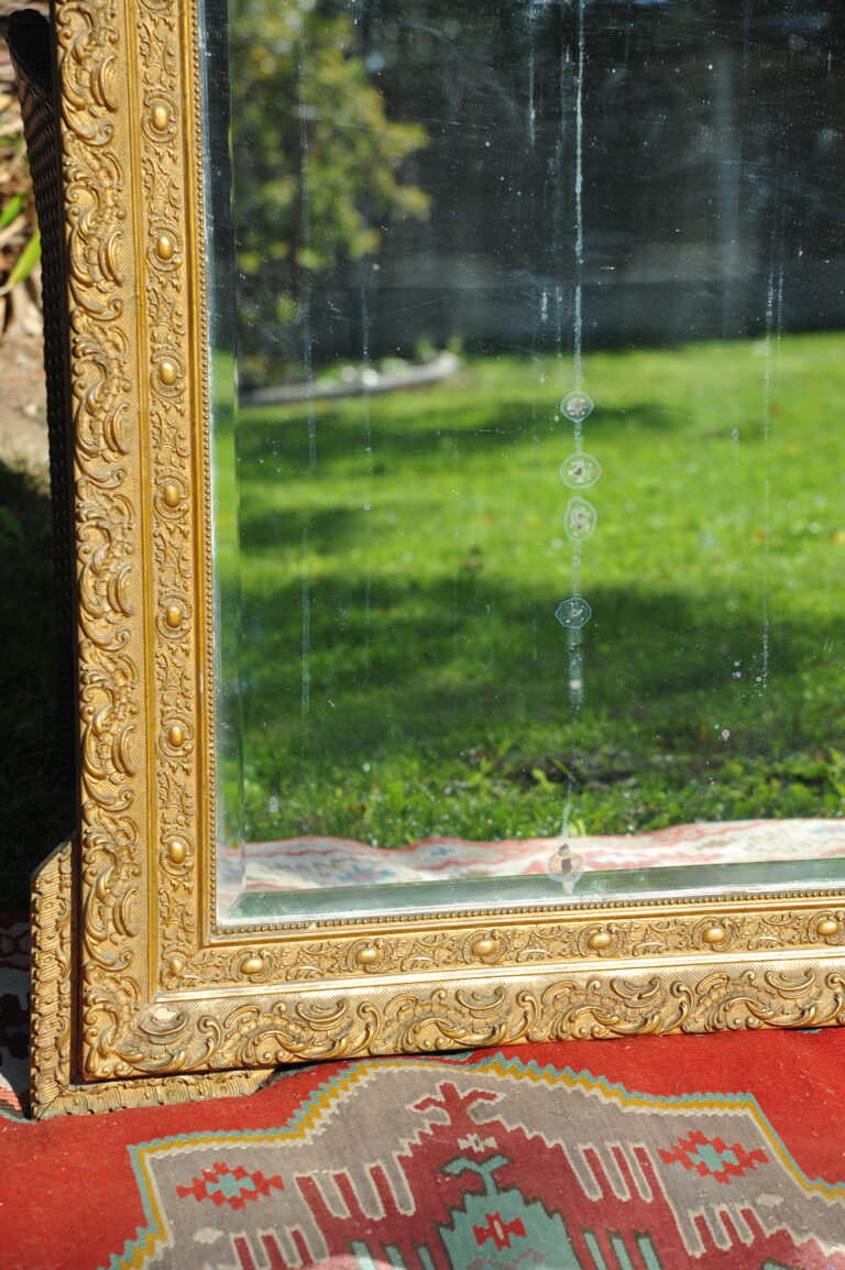 An Very Large Antique 19c French Gilt Gesso Beveled Wall Mirror