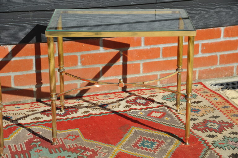 A Pair of Mid C Maison Jansen Side Bout de Canape Brass and Glass Tables